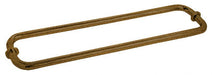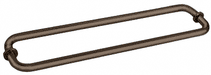 The BM Series of Back-to-Back Towel Bars With Metal Washers are constructed of 1.5 mil thick heavy brass tubing. Decorative metal back-up washers are included, as well as plastic washers to protect against glass-to-metal contact. Consists of one bar for each side of the door in four standard sizes. Custom sizes are available.