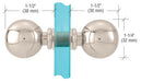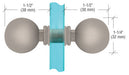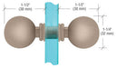 Our Ball Style Knob measures 1-1/4" (32 mm) in diameter, and extends 1-1/2" (38 mm) from the door surface. Knob is made of solid brass in your choice of nine finishes